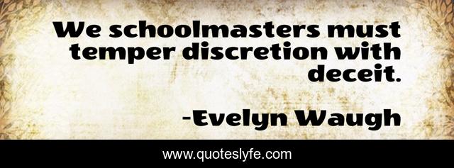 This page presents the quote "We schoolmasters must temper discretion with deceit.". Author of this quote is Evelyn Waugh. .
