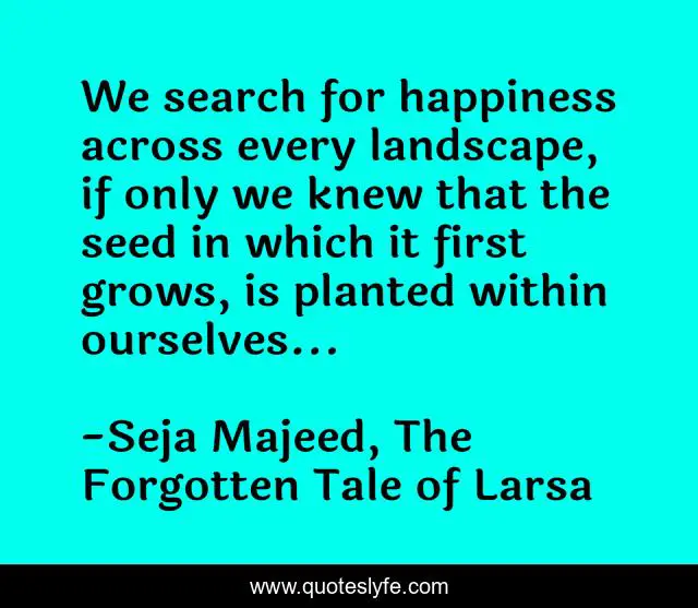 "Seja Majeed, The Forgotten Tale of Larsa Quotes." Quoteslyfe.com, 2025. Sat. 06 Dec. 2025. <https://www.quoteslyfe.com/quote/We-search-for-happiness-across-every-landscape-92073>.