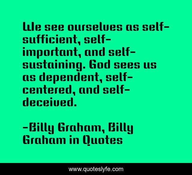 "Billy Graham, Billy Graham in Quotes Quotes." Quoteslyfe.com, 2025. Fri. 05 Dec. 2025. <https://www.quoteslyfe.com/quote/We-see-ourselves-as-self-sufficient-self-152957>.