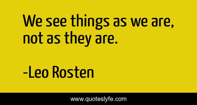 This page presents the quote "We see things as we are, not as they are.". Author of this quote is Leo Rosten. This quote is about things, see,.