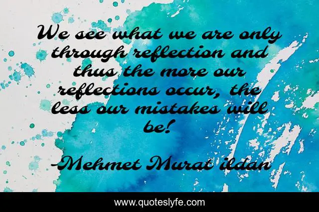 This page presents the quote "We see what we are only through reflection and thus the more our reflections occur, the less our mistakes will be!". Author of this quote is Mehmet Murat ildan. This quote is about mistake, mistakes, reflections, reflection,.