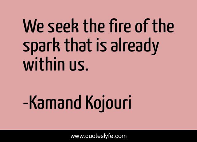 "Kamand Kojouri Quotes." Quoteslyfe.com, 2025. Sat. 06 Dec. 2025. <https://www.quoteslyfe.com/quote/We-seek-the-fire-of-the-spark-199223>.