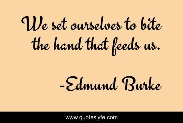 This page presents the quote "We set ourselves to bite the hand that feeds us.". Author of this quote is Edmund Burke. .