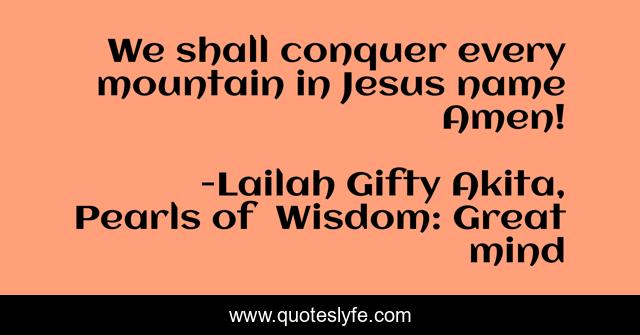 "Lailah Gifty Akita, Pearls of Wisdom: Great mind Quotes." Quoteslyfe.com, 2025. Sat. 06 Dec. 2025. <https://www.quoteslyfe.com/quote/We-shall-conquer-every-mountain-in-Jesus-85388>.