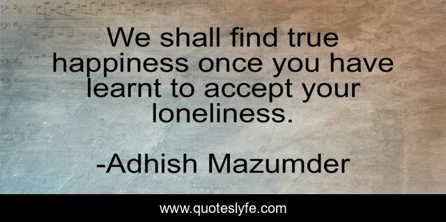 This page presents the quote "We shall find true happiness once you have learnt to accept your loneliness.". Author of this quote is Adhish Mazumder. This quote is about living, inspiring, acceptance, learning, life-lesson, positive, loneliness, motivational, life,.