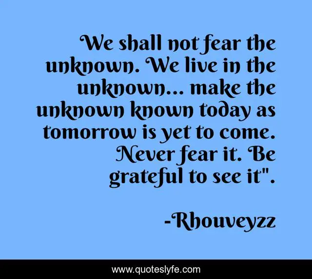 "Rhouveyzz Quotes." Quoteslyfe.com, 2025. Fri. 05 Dec. 2025. <https://www.quoteslyfe.com/quote/We-shall-not-fear-the-unknown-We-45741>.