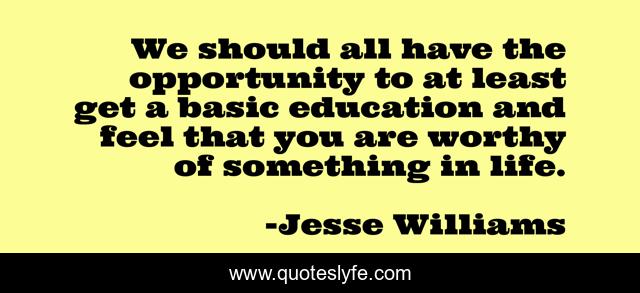 This page presents the quote "We should all have the opportunity to at least get a basic education and feel that you are worthy of something in life.". Author of this quote is Jesse Williams. This quote is about life, opportunity,.