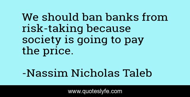 "Nassim Nicholas Taleb Quotes." Quoteslyfe.com, 2025. Sat. 06 Dec. 2025. <https://www.quoteslyfe.com/quote/We-should-ban-banks-from-risk-taking-329306>.