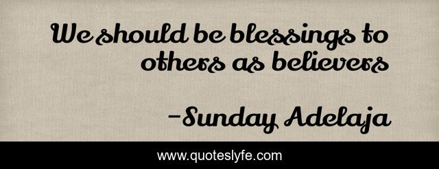 This page presents the quote "We should be blessings to others as believers". Author of this quote is Sunday Adelaja. This quote is about love, people, money, principles, employment, worship, destiny, service, god,.