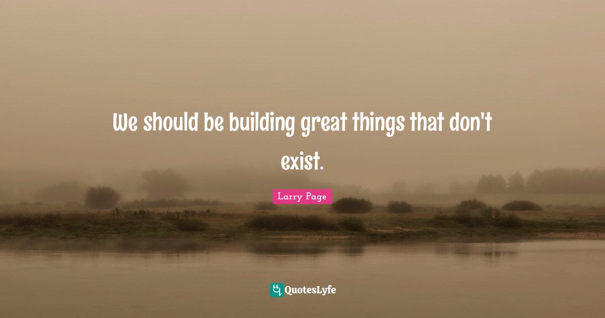 This page presents the quote "We should be building great things that don't exist.". Author of this quote is Larry Page. This quote is about building, great things,.