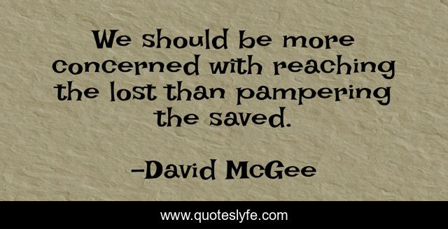 This page presents the quote "We should be more concerned with reaching the lost than pampering the saved.". Author of this quote is David McGee. This quote is about discipleship, evangelism,.