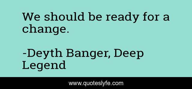 This page presents the quote "We should be ready for a change.". Author of this quote is Deyth Banger, Deep Legend. This quote is about a, ready, change, for,.
