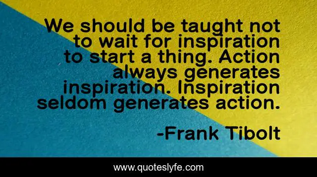This page presents the quote "We should be taught not to wait for inspiration to start a thing. Action always generates inspiration. Inspiration seldom generates action.". Author of this quote is Frank Tibolt. This quote is about going, getting,.