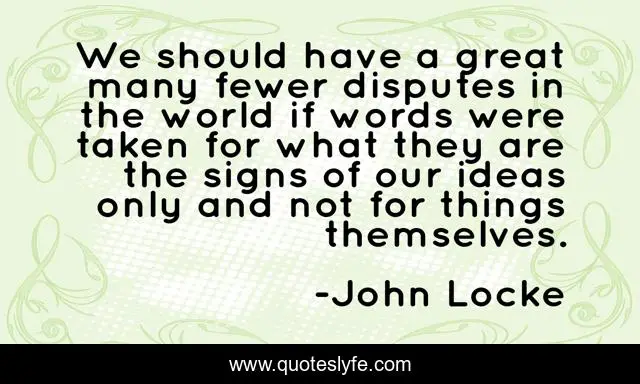 This page presents the quote "We should have a great many fewer disputes in the world if words were taken for what they are the signs of our ideas only and not for things themselves.". Author of this quote is John Locke. .