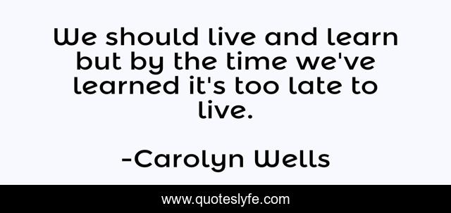 This page presents the quote "We should live and learn but by the time we've learned it's too late to live.". Author of this quote is Carolyn Wells. .