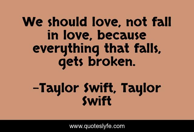 This page presents the quote "We should love, not fall in love, because everything that falls, gets broken.". Author of this quote is Taylor Swift, Taylor Swift. This quote is about broken, quote, love, affection, taylor-swift,.