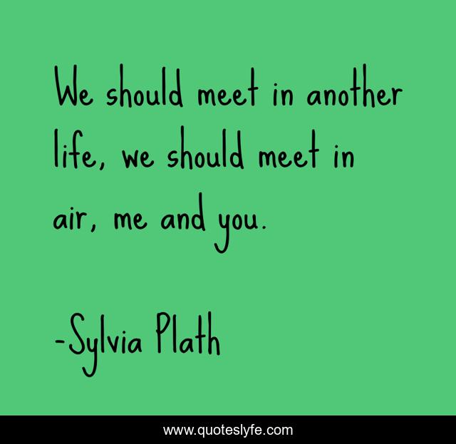 This page presents the quote "We should meet in another life, we should meet in air, me and you.". Author of this quote is Sylvia Plath. This quote is about couples, friendship,.