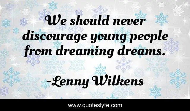 This page presents the quote "We should never discourage young people from dreaming dreams.". Author of this quote is Lenny Wilkens. This quote is about people, young, dreaming,.