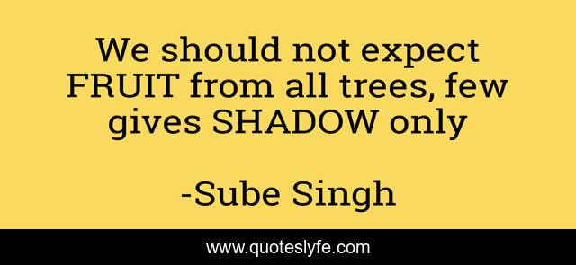 This page presents the quote "We should not expect FRUIT from all trees, few gives SHADOW only". Author of this quote is Sube Singh. .