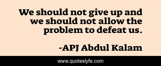 This page presents the quote "We should not give up and we should not allow the problem to defeat us.". Author of this quote is APJ Abdul Kalam. This quote is about confidence, positive, motivational, optimistic, inspirational, enthusiasm,.
