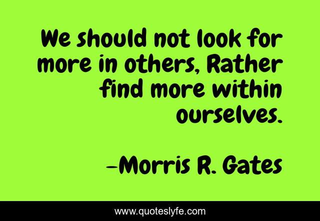 This page presents the quote "We should not look for more in others, Rather find more within ourselves.". Author of this quote is Morris R. Gates. This quote is about soul-searching, self-improvement,.
