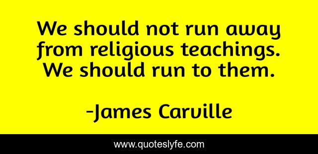 This page presents the quote "We should not run away from religious teachings. We should run to them.". Author of this quote is James Carville. This quote is about away, run,.