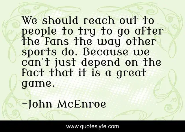 This page presents the quote "We should reach out to people to try to go after the fans the way other sports do. Because we can't just depend on the fact that it is a great game.". Author of this quote is John McEnroe. This quote is about great, game, people,.
