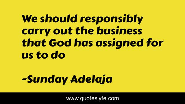 This page presents the quote "We should responsibly carry out the business that God has assigned for us to do". Author of this quote is Sunday Adelaja. This quote is about prosperity, wealth, business, money, god, riches, assigned, responsibly, carry,.
