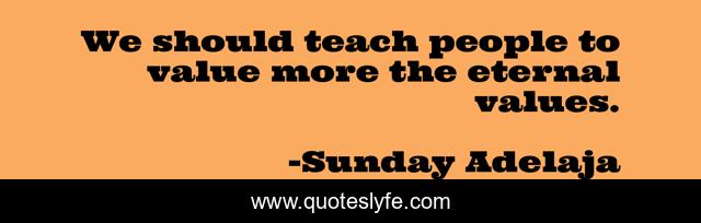 This page presents the quote "We should teach people to value more the eternal values.". Author of this quote is Sunday Adelaja. This quote is about eternal-values, teach, value,.
