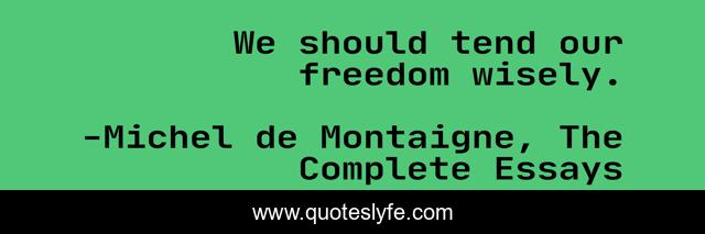 This page presents the quote "We should tend our freedom wisely.". Author of this quote is Michel de Montaigne, The Complete Essays. .