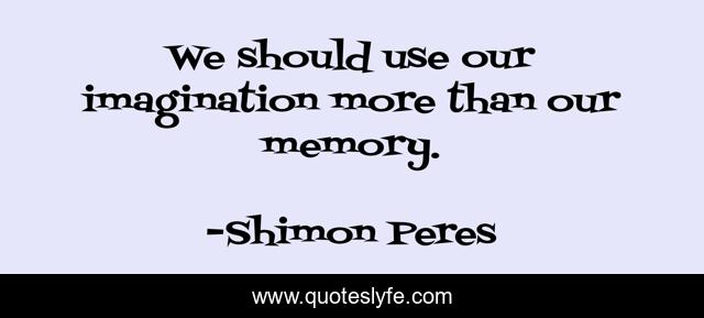 This page presents the quote "We should use our imagination more than our memory.". Author of this quote is Shimon Peres. This quote is about imagination, future, history, peace, progress,.