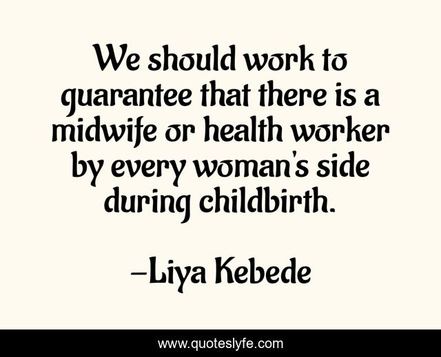 This page presents the quote "We should work to guarantee that there is a midwife or health worker by every woman's side during childbirth.". Author of this quote is Liya Kebede. This quote is about work, woman, guarantee,.