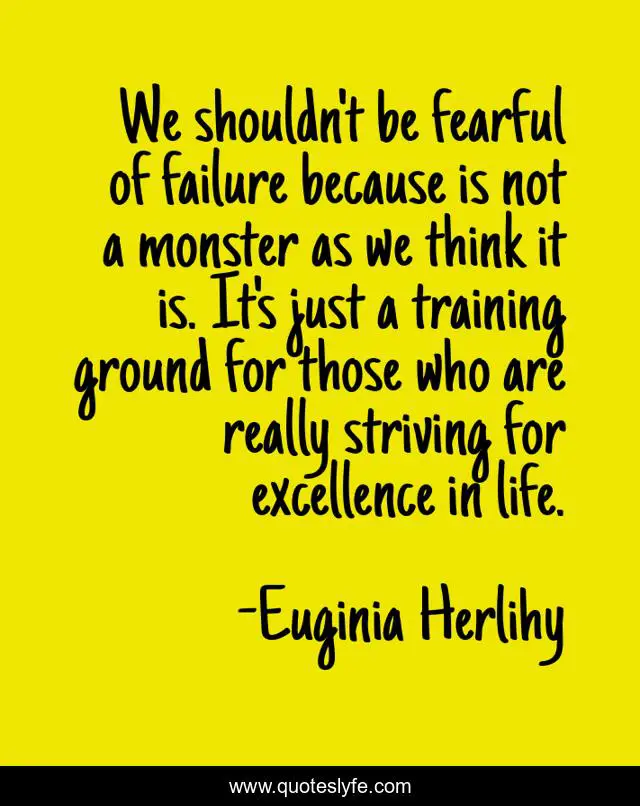 This page presents the quote "We shouldn't be fearful of failure because is not a monster as we think it is. It's just a training ground for those who are really striving for excellence in life.". Author of this quote is Euginia Herlihy. .