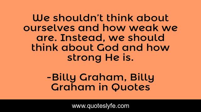 This page presents the quote "We shouldn’t think about ourselves and how weak we are. Instead, we should think about God and how strong He is.". Author of this quote is Billy Graham, Billy Graham in Quotes. This quote is about strength, billy-graham,.