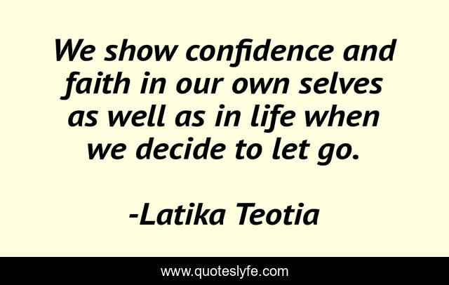 This page presents the quote "We show confidence and faith in our own selves as well as in life when we decide to let go.". Author of this quote is Latika Teotia. This quote is about faith, confidence, let-go, life-lessons,.