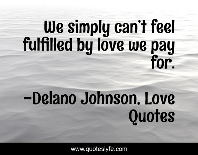 This page presents the quote "We simply can’t feel fulfilled by love we pay for.". Author of this quote is Delano Johnson, Love Quotes. This quote is about love-hurts, lovers, love, delano-johnson, daydream, cinderella, love-at-first-sight, rare-images-of-love, fantasy,.