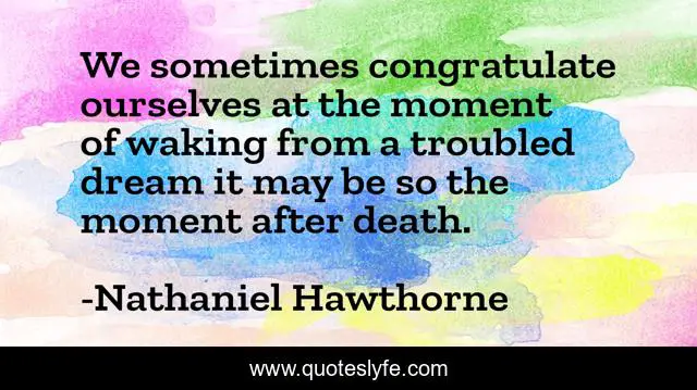 This page presents the quote "We sometimes congratulate ourselves at the moment of waking from a troubled dream it may be so the moment after death.". Author of this quote is Nathaniel Hawthorne. This quote is about moment, sometimes, dream,.