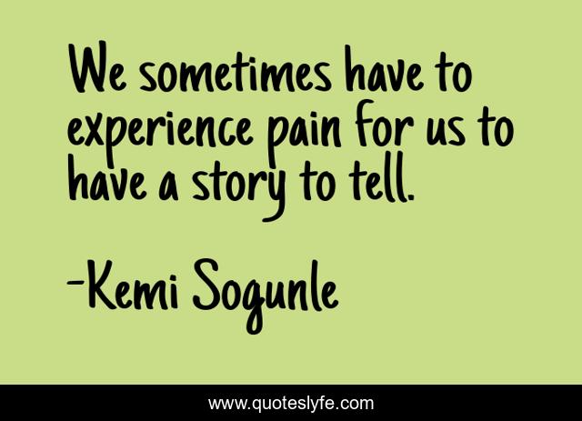 This page presents the quote "We sometimes have to experience pain for us to have a story to tell.". Author of this quote is Kemi Sogunle. This quote is about life, pain, testimony-of-life, experience, hurt, past, experiences, healing, life-lessons,.