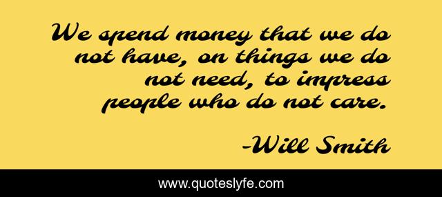 This page presents the quote "We spend money that we do not have, on things we do not need, to impress people who do not care.". Author of this quote is Will Smith. This quote is about enthusiasm, humor, inspirational,.