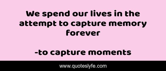 This page presents the quote "We spend our lives in the attempt to capture memory forever". Author of this quote is to capture moments. .