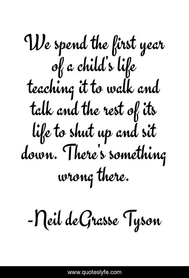 This page presents the quote "We spend the first year of a child's life teaching it to walk and talk and the rest of its life to shut up and sit down. There's something wrong there.". Author of this quote is Neil deGrasse Tyson. This quote is about education, children,.