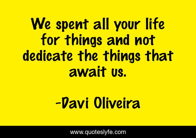 This page presents the quote "We spent all your life for things and not dedicate the things that await us.". Author of this quote is Davi Oliveira. This quote is about waiting, life-lessons, patience-and-timing,.