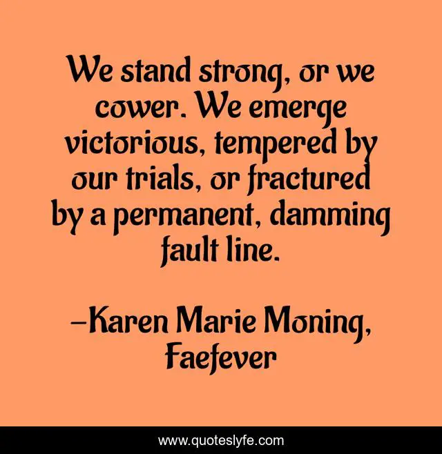 "Karen Marie Moning, Faefever Quotes." Quoteslyfe.com, 2025. Fri. 05 Dec. 2025. <https://www.quoteslyfe.com/quote/We-stand-strong-or-we-cower-We-173565>.