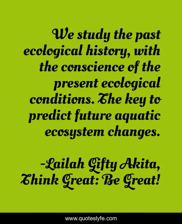 "Lailah Gifty Akita, Think Great: Be Great! Quotes." Quoteslyfe.com, 2025. Sat. 06 Dec. 2025. <https://www.quoteslyfe.com/quote/We-study-the-past-ecological-history-with-110274>.