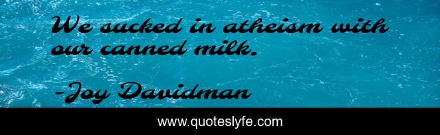 This page presents the quote "We sucked in atheism with our canned milk.". Author of this quote is Joy Davidman. This quote is about parenting, discipleship, theology,.