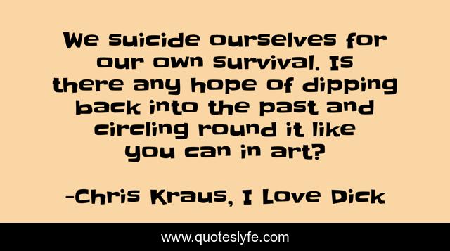 "Chris Kraus, I Love Dick Quotes." Quoteslyfe.com, 2025. Sat. 06 Dec. 2025. <https://www.quoteslyfe.com/quote/We-suicide-ourselves-for-our-own-survival-65918>.