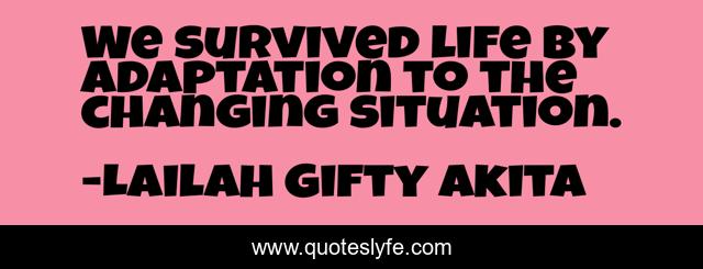 "Lailah Gifty Akita Quotes." Quoteslyfe.com, 2025. Sat. 06 Dec. 2025. <https://www.quoteslyfe.com/quote/We-survived-life-by-adaptation-to-the-105357>.