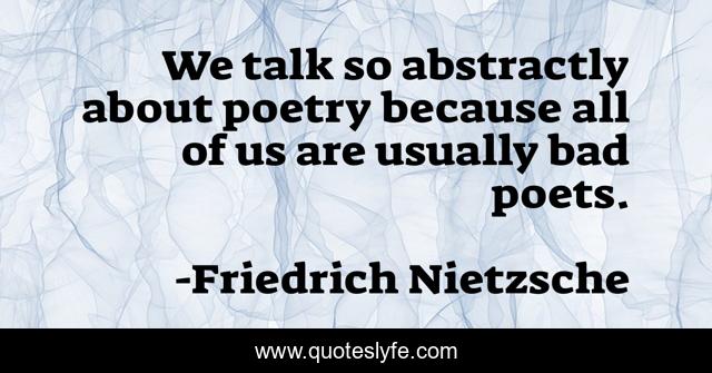 This page presents the quote "We talk so abstractly about poetry because all of us are usually bad poets.". Author of this quote is Friedrich Nietzsche. .