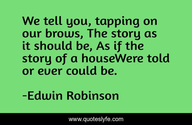 "Edwin Robinson Quotes." Quoteslyfe.com, 2025. Fri. 05 Dec. 2025. <https://www.quoteslyfe.com/quote/We-tell-you-tapping-on-our-brows-247515>.