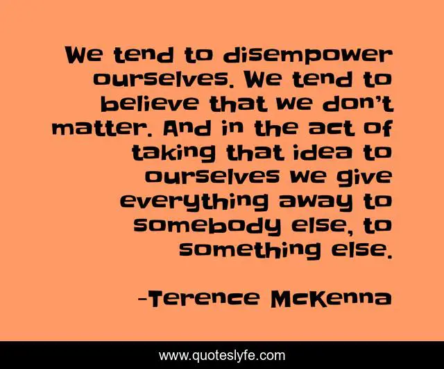 "Terence McKenna Quotes." Quoteslyfe.com, 2025. Sat. 06 Dec. 2025. <https://www.quoteslyfe.com/quote/We-tend-to-disempower-ourselves-We-tend-204948>.